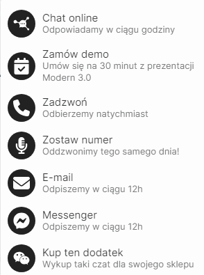 Czyli możesz wybrać opcję numer 1. która jest czatem plus bazą do innych widgetów (zostaw numer, a oddzwonimy, messenger, whatsapp etc). Dla większości klientów polecam wybrać tę opcję.