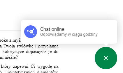 Jeśli odświeżysz teraz sklep to zobaczysz (póki co) dość brzydki widget naszego czatu: