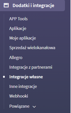 W sklepie przechodzimy do sekcji "Dodatki i integracje" -> "Integracje własne".