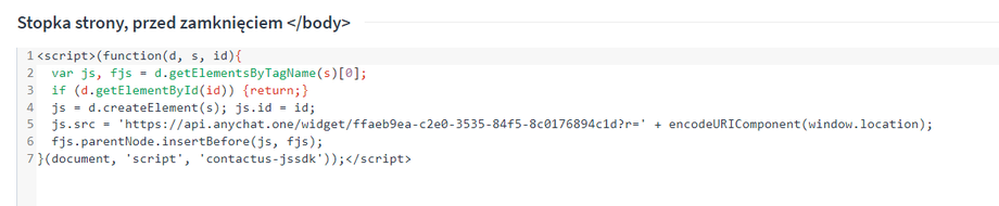 Nasz skopiowany kod wklej w "Stopka strony, przed zamknięciem </body>"