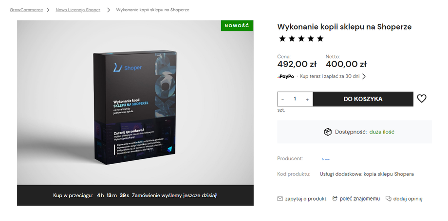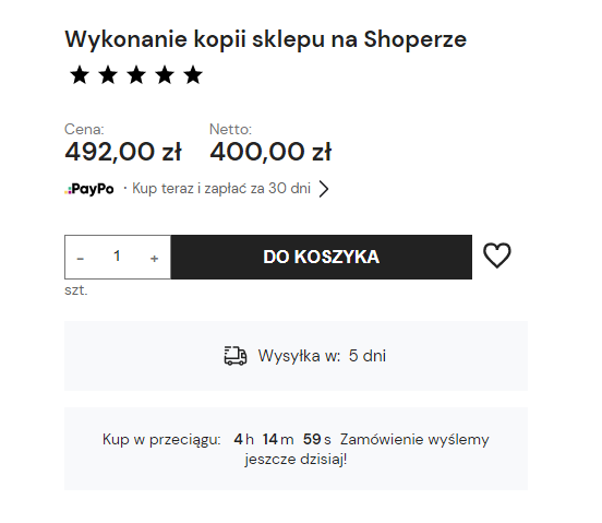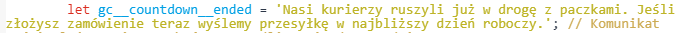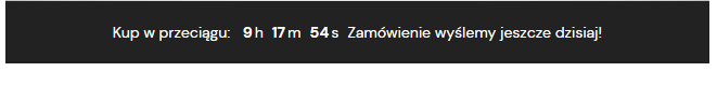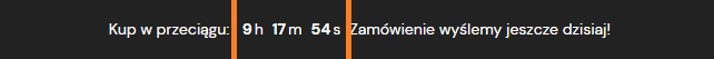 Ten tekst wyświetla się po zegarze. Czyli: mamy najpierw kawałek tekstu z modułu „Czas wysyłki” na karcie produktu.