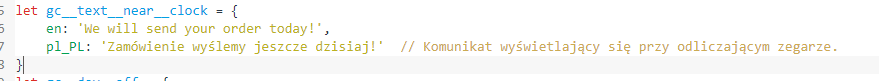 Jeśli zamówienia mają wpływać do godziny 11, bo o 12 masz wysyłki, to tu jest miejsce na zmianę odliczania tego licznika. Wpisujemy pomiędzy cudzysłowem godzinę w zakresie 0-24.