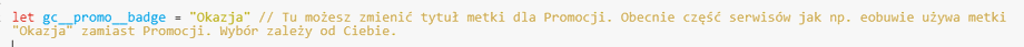 W tym ustawieniu, jak powyżej, możesz zmienić opcję wyświetlanej metki Promocje. Coraz więcej ecommersów idzie w stronę „Okazji” zamiast promocji.