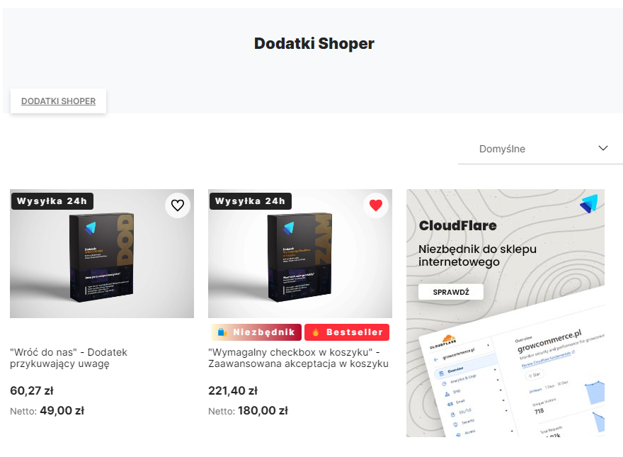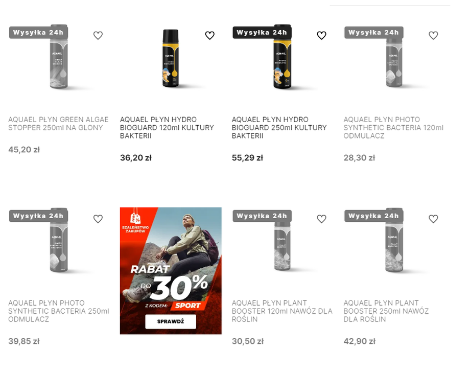 Jeśli Twój sklep posiada Pakiet Modyfikacyjny "Stale widoczne dodanie do koszyka" to sugerowany rozmiar banerów na listingu to 280x517px