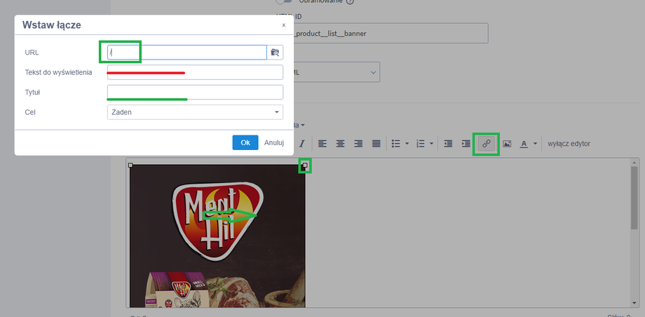 Ponownie kliknij na zdjęcie, sprawdź czy się rogi podświetliły. Podświetli się także ikonka łańcucha - linku.