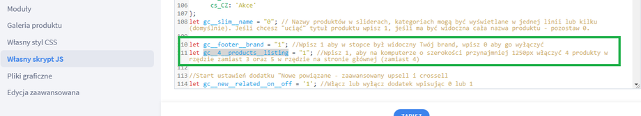 Dalej możesz określić w ustawieniu gc__start__product__mobile czyli po którym produkcie na telefonie ma się pojawić pierwszy baner i dalej w ustawieniu gc__banner__interval__mobile zmienisz co ile produktów ma się pojawiać baner numer 2 i 3.