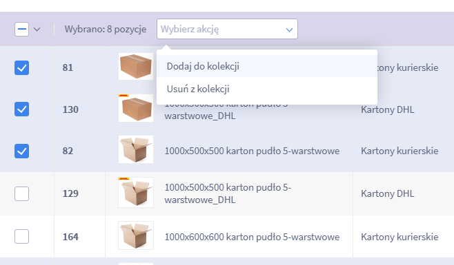 Kliknij "Dodaj produkt do kolekcji", zaznacz swoją topkę sprzedażową i ze zbiorczej listy kliknij "Dodaj do kolekcji" i potem "Wykonaj".