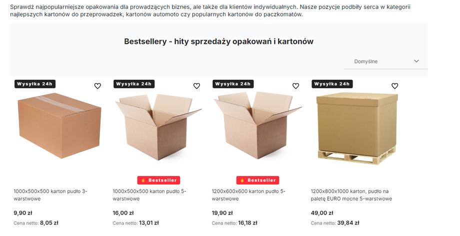 Nazwa? Trochę SEO, trochę pomocy dla klienta. W tym tutorialu mamy klienta z kartonami (opakowaniami) więc takie tu zobaczysz. U mnie z kolei: https://sklep.growcommerce.pl/bestseller