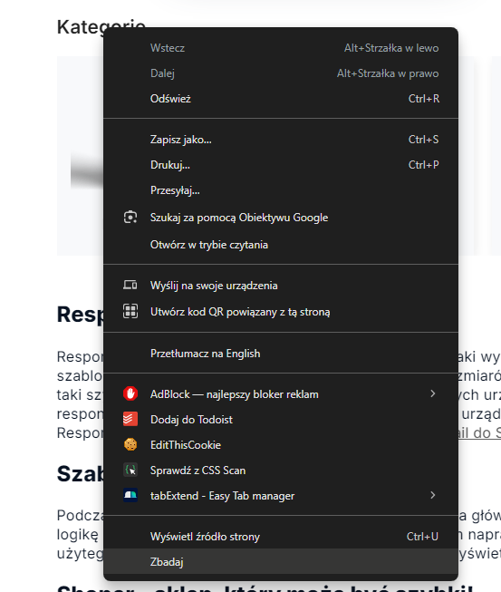 Drugim sposobem na sprawdzenie jaki numer ma nasz slider jest kliknięcie prawym przyciskiem myszy (PPM) na tytuł (kategorie) czy gdzieś możliwie wysoko w obrębie tego modułu -> Zbadaj.