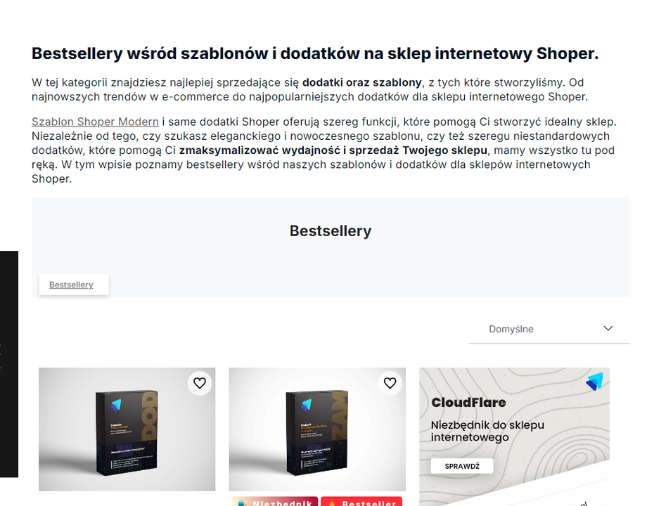 Shoper ogarnia jedynie promocje i nowości jako osobna zakładka, ale nie "Bestsellery" czy inne ciekawe zestawienia. W związku z tym, pierwszą rzeczą jaką musisz zrobić to stworzyć podstronę "Bestsellerów".