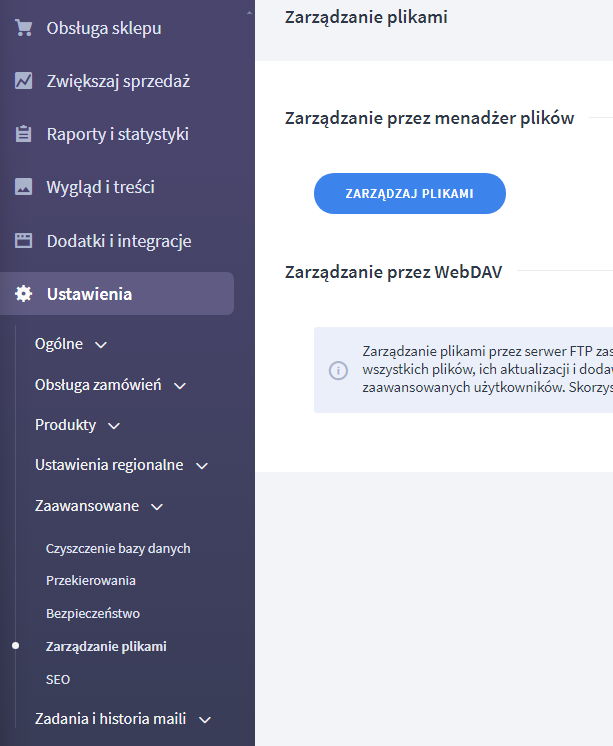 Przejdź do "Ustawień" -> "Zaawansowane" -> "Zarządzanie plikami":