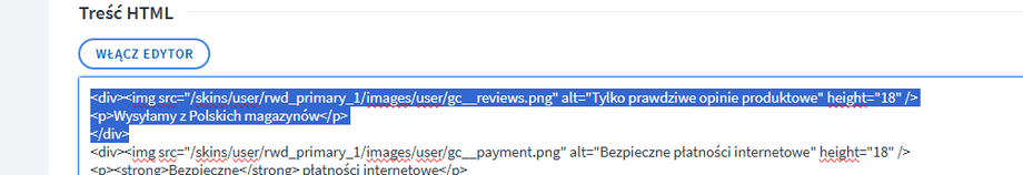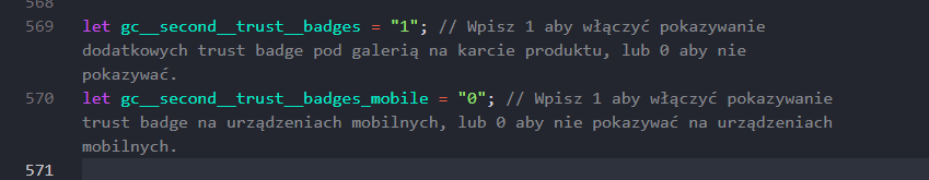 let gc__second__trust__badges = "1"; // Wpisz 1 aby włączyć pokazywanie dodatkowych trust badge pod galerią na karcie produktu, lub 0 aby nie pokazywać.let gc__second__trust__badges_mobile = "0"; // Wpisz 1 aby włączyć pokazywanie trust badge na urządzeniach mobilnych, lub 0 aby nie pokazywać na urządzeniach mobilnych.