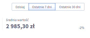 W koszyku dosprzedajemy produkty o wartości około 20-30% średniej wartości koszyka. Średnią wartość koszyka znajdziesz w panelu sklepu, u nas na GrowCommerce wygląda to tak: