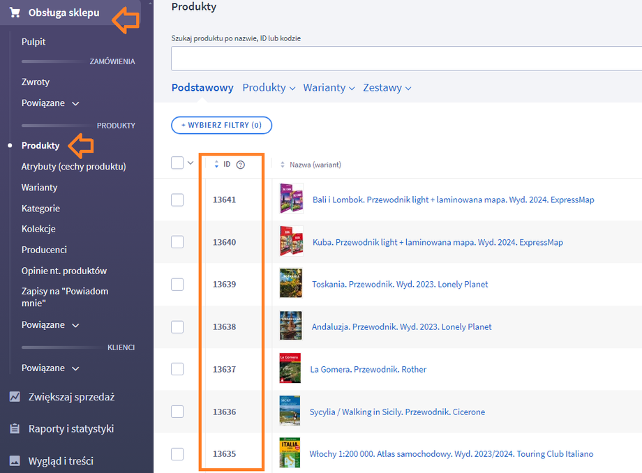 ID produktu możesz zdobyć np. w panelu sklepu: