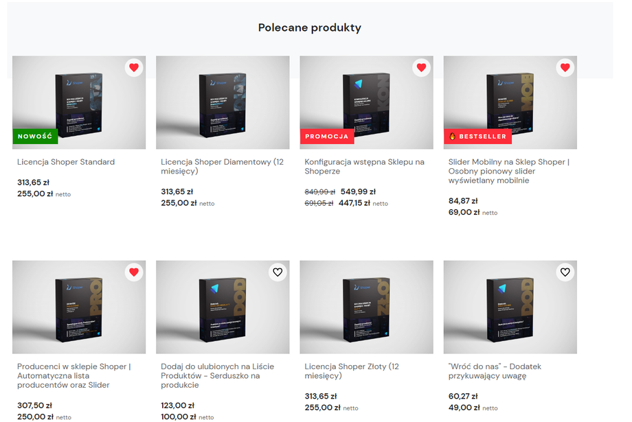 Mamy więc na głownej wszystkie produkty, jakie chcieliśmy, ale te nadal są zapisane jako „Polecane produkty”.