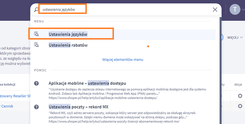 Na górze strony w panelu skorzystaj z wyszukiwarki i wpisz „ustawienia języków”. Kliknij w ten wynik.