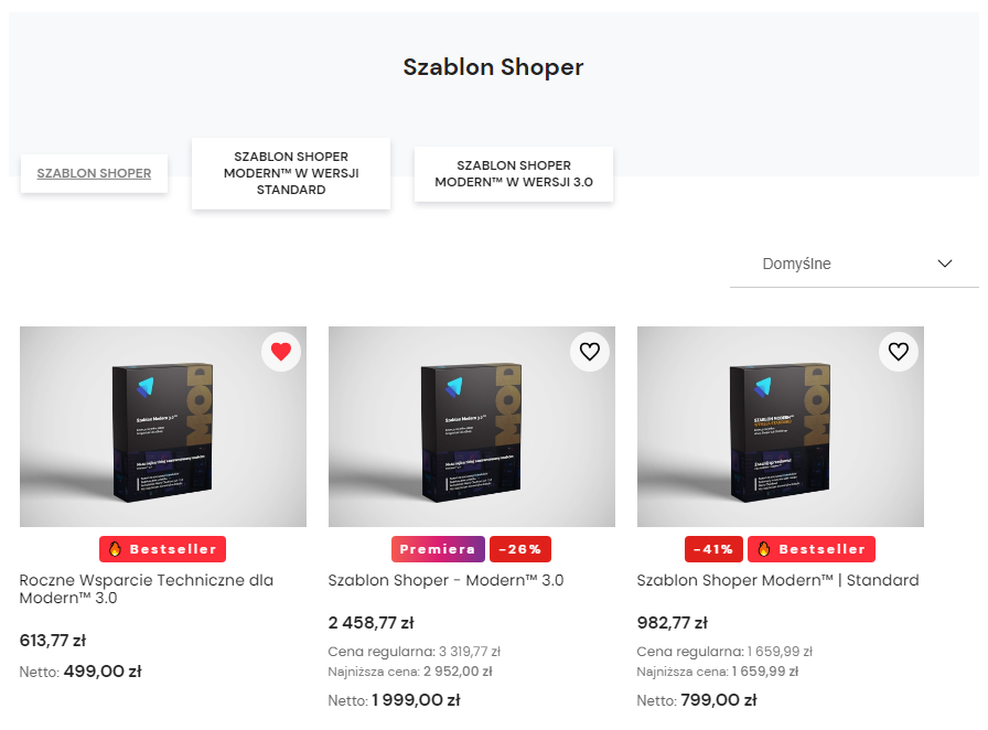 Dotychczas w sliderze promocji, te produkty nie miały „metki” promocji. Wprowadził to dopiero nasz szablon. Oprócz obsługi promocji i nowości (które były widoczne w obrębie sklepu np. kategorii ale nie na sliderach), teraz także dodaliśmy obsługę bestsellerów.